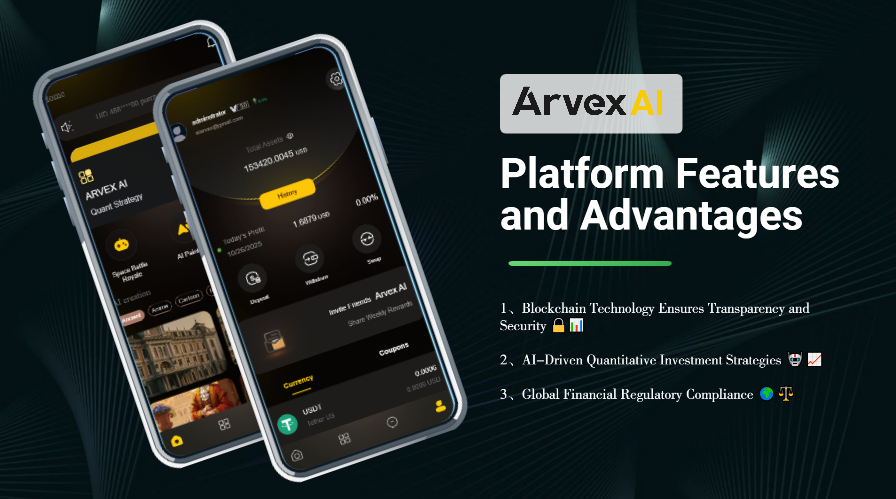Arvex AI is committed to integrating cutting-edge AI and blockchain technologies to deliver quantitative investment strategies capable of navigating today’s complex and dynamic financial markets. Through machine learning and data mining, the platform can analyze market trends in real time, predict price fluctuations, and automatically adjust investment portfolios — achieving efficient and low-risk investment management.