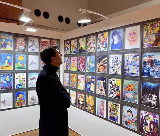 As one of the most prestigious exhibition spaces in the Louvre, the Carrousel du Louvre has witnessed the birth of countless artistic legends. Designed by architects of the Louis XIV era, this rectangular exhibition hall, with its iconic blue-and-gold dome and natural skylight system, provides an exceptional display context for the youth’s works. The exhibition inherits Picasso’s artistic spirit of “subverting tradition and daring to innovate,” featuring diverse art forms including oil painting, traditional Chinese painting, animation, calligraphy, watercolor, and photography. Creators ranging from the preschool group to the adolescent group pay tribute to the world’s artistic masters with their unrestrained imagination and unique artistic perspectives. Among them, traditional Chinese paintings by Chinese youth stunned the audience with their ink charm and artistic conception, while modern creative works by overseas youth showcased avant-garde expressions. The collision of arts from different cultural backgrounds resonated widely among the audience.