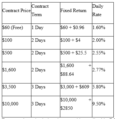Pick from the variety of contracts listed above. Mining begins automatically once purchased, and earnings are credited daily.