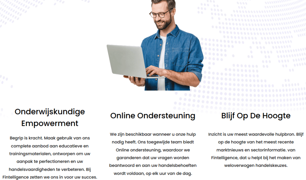 Daarnaast biedt Fin-telligence.com toegang tot educatieve middelen, die handelaren waardevolle inzichten geven in markstrategieën, handels-technieken en de basisprincipes van beleggen.