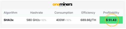 • High hash rate of 580 GH/s delivering strong, reliable mining performance