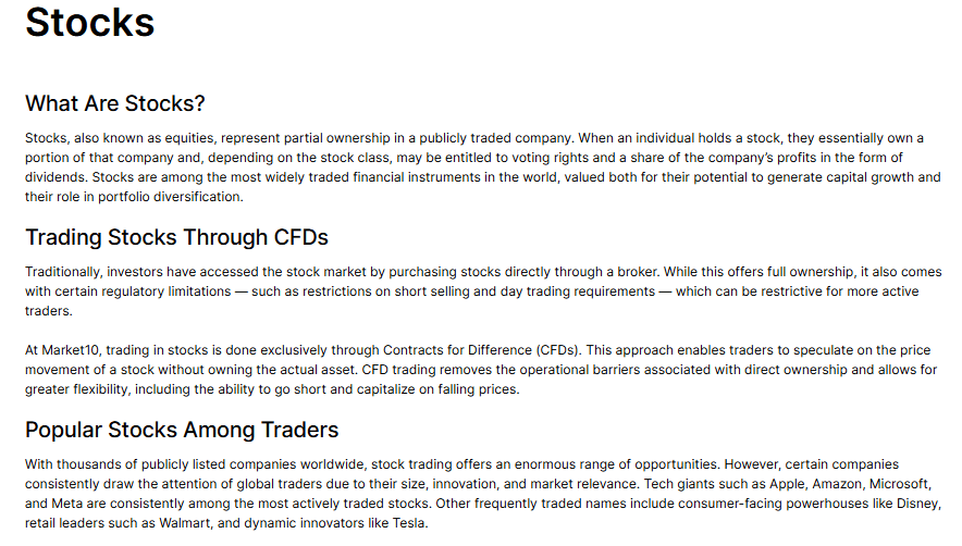 Market10.net Reviews Stock CFDs: Diversification in a Volatile Market