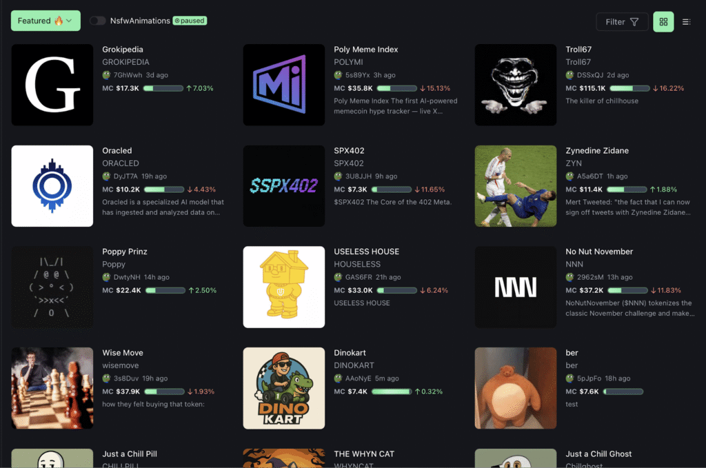 The Pump.fun platform remains a primary hub for Solana memecoin trading and community discovery.