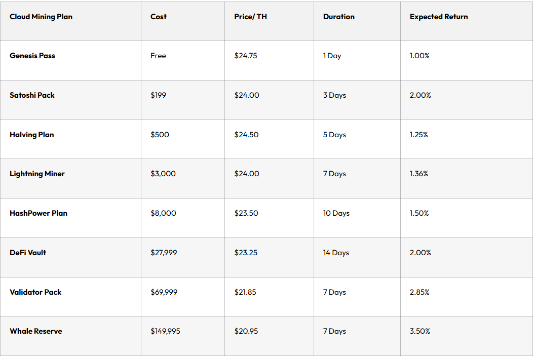 - The platform eliminates the need for expensive hardware by designing fully cloud-based operations. Investors do not need to purchase on-site servers, pay huge electric bills, and recurrent maintenance costs. Instead, they purchase scalable hash rate contracts that require much lower capital and receive automated daily returns in crypto.