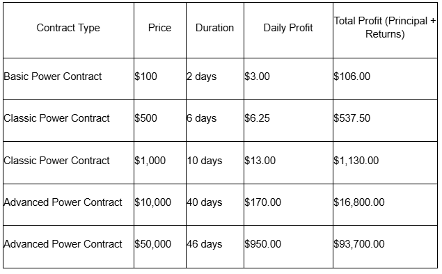 - Daily Passive Income – Earn every 24 hours; principal is returned after contract completion