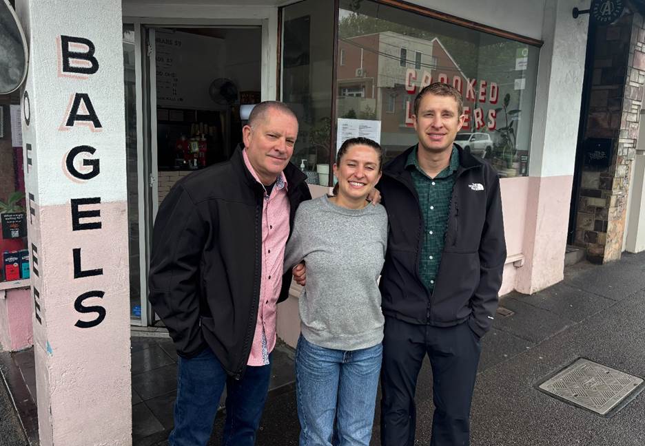 The Click family made a morning stop at one of Melbourne’s favorite breakfast spots, Crooked Letters, this week, catching up over bagels and specialty schmears at their new location in Prahran. After closing their lease at 3B Murray Street, the café has moved to 293 High Street, where the aroma of freshly baked bagels and brewed coffee fills the street.