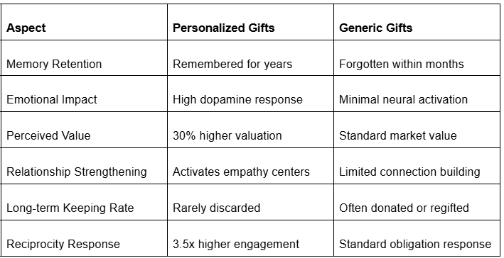 That’s why personalized gifts hit differently. People often have strong emotional reactions to customized presents because their brain literally processes thoughtfulness as care and love.
