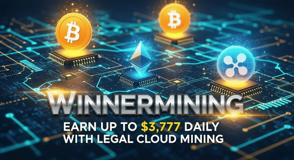 WinnerMining is a UK-registered green cloud mining platform that pools global computing power. Users can earn rewards in BTC, ETH, XRP, or stablecoins daily, without trading, timing the market, or owning expensive mining rigs.