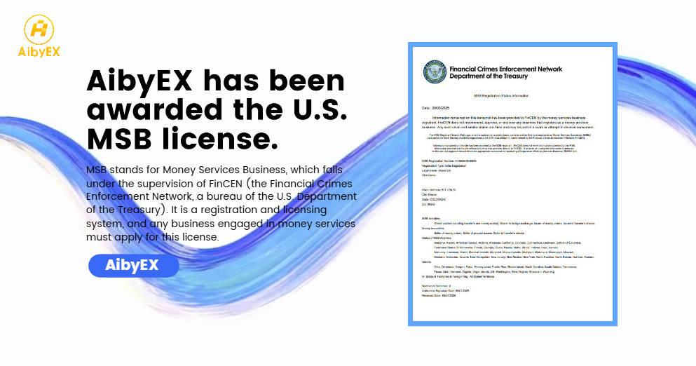 With the rapid growth of the global digital asset trading market, investors are paying increasing attention to platform compliance and security. As an international cryptocurrency trading platform registered in the United States and holding an MSB (Money Services Business) license, AibyEX Ltd officially announced its commitment to building compliance as the cornerstone, providing users with a safe, reliable, and convenient trading environment.