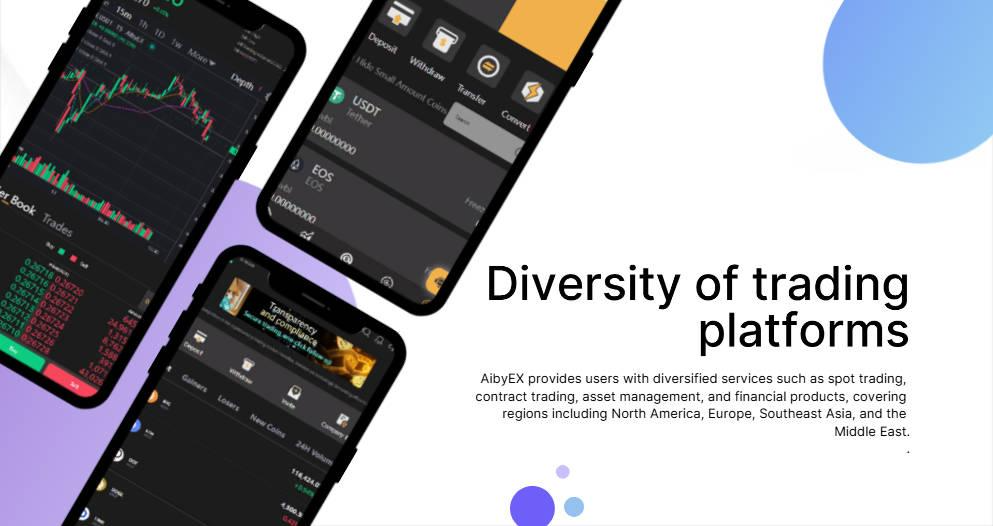 AibyEX provides users with diversified services such as spot trading, contract trading, asset management, and financial products, covering regions including North America, Europe, Southeast Asia, and the Middle East. By optimizing the trading experience and enhancing system stability, the platform is committed to enabling every user to achieve convenient and efficient asset management in the global market.